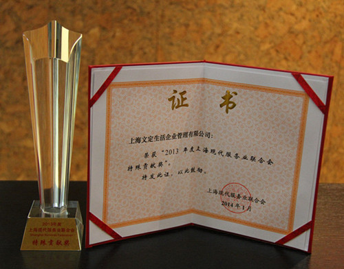 文定生活荣获“2013年度上海现代服务业联合会特殊贡献奖”