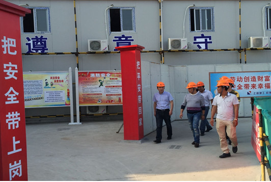 施工现场,项目经理介绍了施工进展和安全生产情况。该工程进展顺利,目前已进入首道支撑土方开挖阶段。赵总强调,在开挖过程中掌握好“分层、分步、对称、平衡、限时”五个要素,现阶段施工要求各部门要进一步深化安全大检查工作,把安全责任切实落到具体责任人、具体岗位和最基层一线,完善和健全各类安全资料,做好人员培训,工地防火管理,现场施工安全管理工作,确保不发生任何问题,保障冬季供水设施安全稳定运行。在确保安全的前提下,加快工程进度,全力打造优质精品工程。
