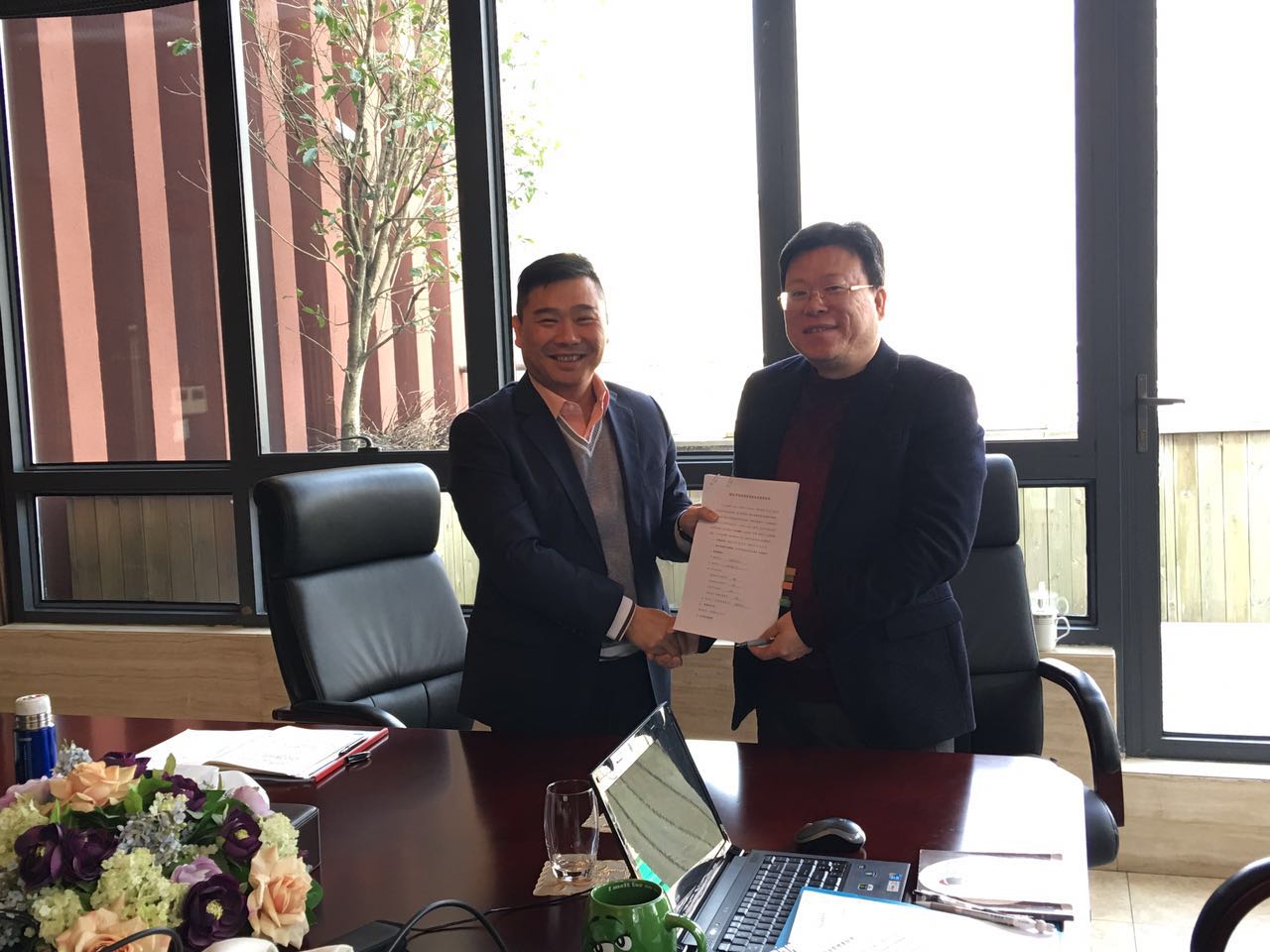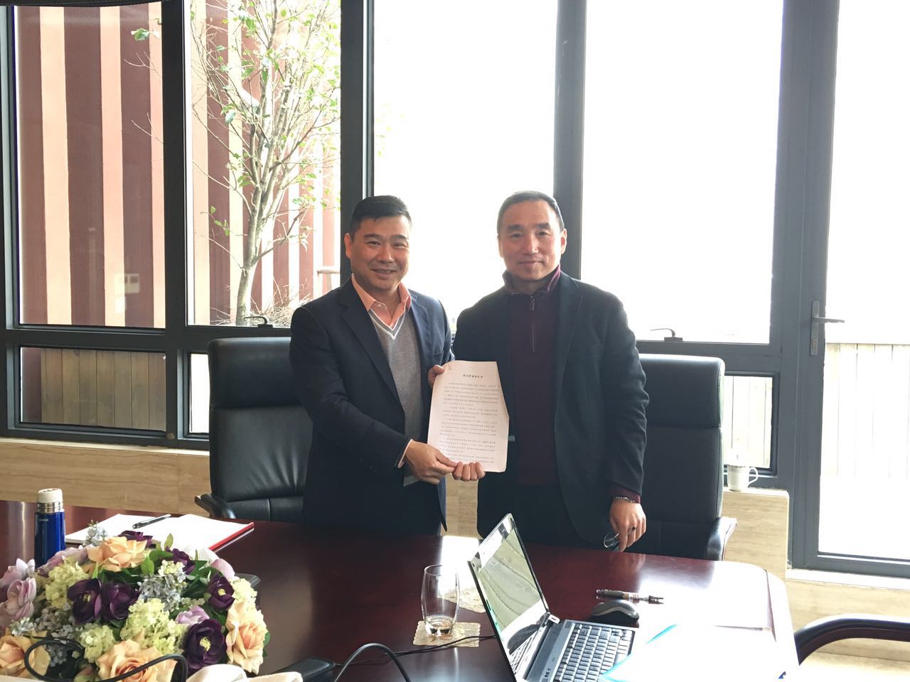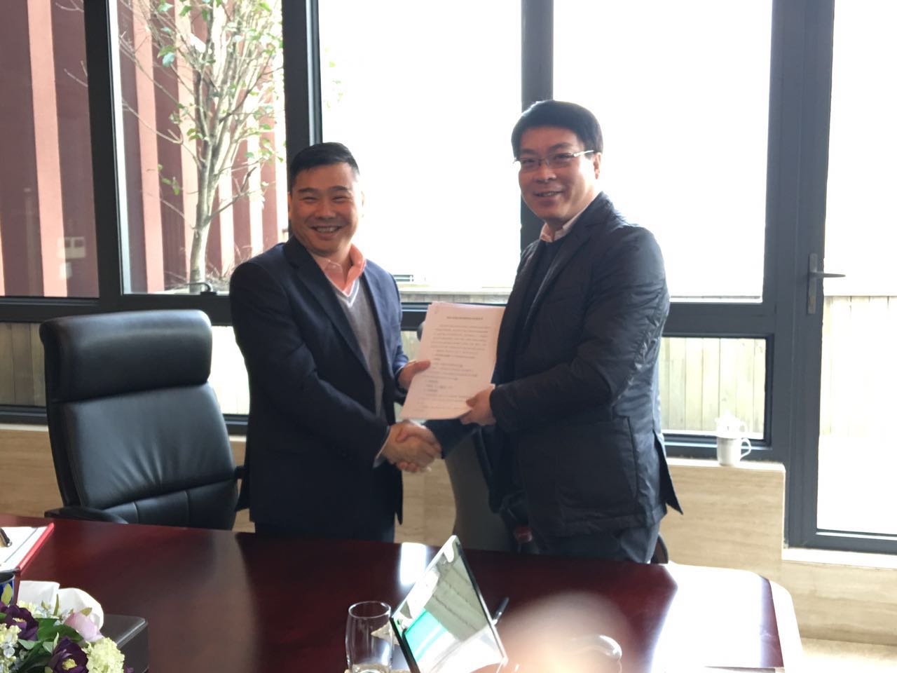 图为集团董事长兼总裁赵增杰与杉海公司总经理余朝锋签约