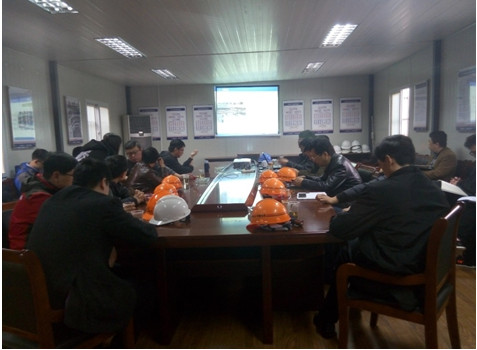 参观完工地之后,我项目部在会议室向兄弟单位一行人介绍了工程的施工概况、安全生产、文明施工、进度控制、目标管理等方面的相关经验和心得。讲述围护阶段的施工难度以及对周边环境的影响,也对高压旋喷桩、三轴止水、三轴裙边加固、地下连续墙和引进新型五轴水泥土搅拌墙的多种施工工艺作简单介绍。