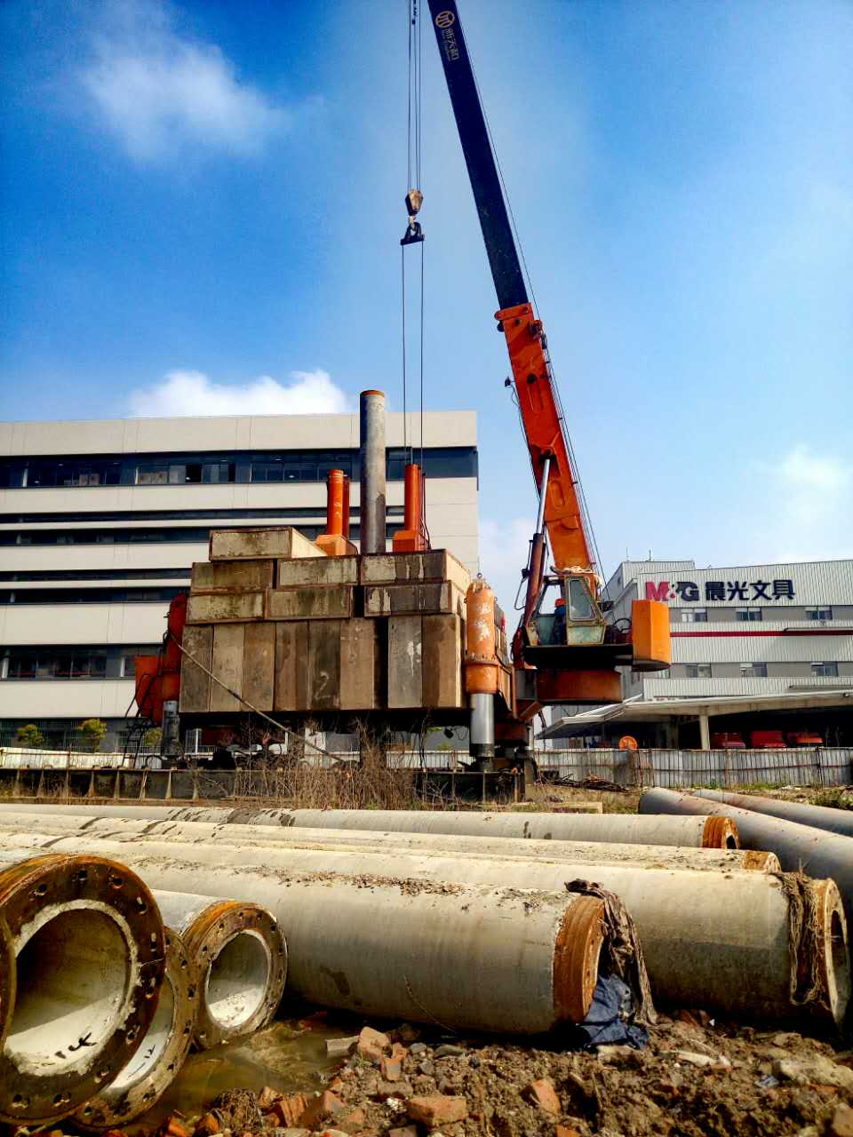 2016年4月8日,阳光明媚,鞭炮齐鸣,由上海晨光文具股份有限公司开发,由上海杉海建筑工程有限公司总承包的办公用品、办公设备、书包笔袋生产基地建设项目南半部分顺利开工,打下第一根桩。