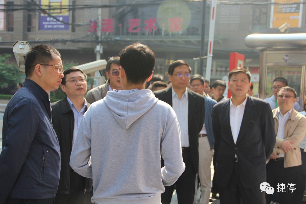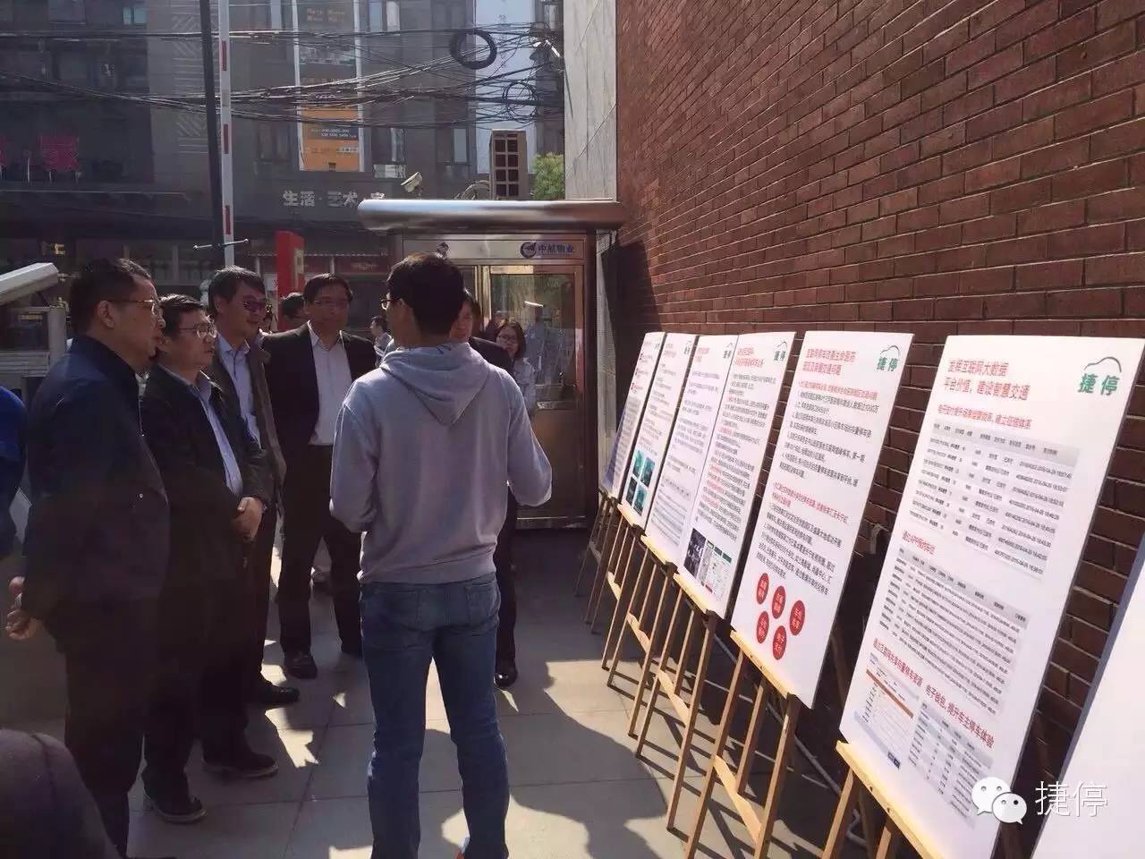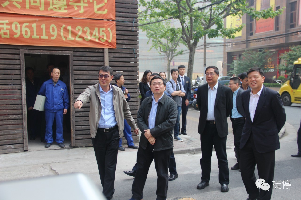 2016年4月29日,杰汇集团迎来了一批尊贵而且特殊的客人——上海市副市长蒋卓庆,徐汇区区委书记莫负春,区长鲍炳章,副区长徐建及区建交委一行领导莅临文定生活创意园区智能停车项目现场。在杰汇集团董事长赵增杰及杰汇信息科技公司姚逸涛总经理的陪同下,市区领导进行了项目视察与指导工作,对杰汇信息智能“错峰停车”的规划理念,项目特点以及产品优势方面进行了全面了解,并表示肯定与鼓励,同时督促项目加快实行,期待捷停"错峰停车"成为智能停车新标杆。