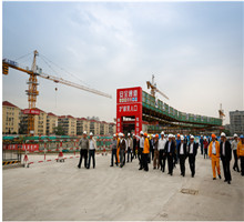 5月2日,上午,建工集团领导徐征、杭迎伟、张立新、叶卫东等一行,在杉海公司总经理余朝锋、副总经理杜楚钦的陪同下,对南部医疗中心项目进行了安全生产、文明施工大检查。