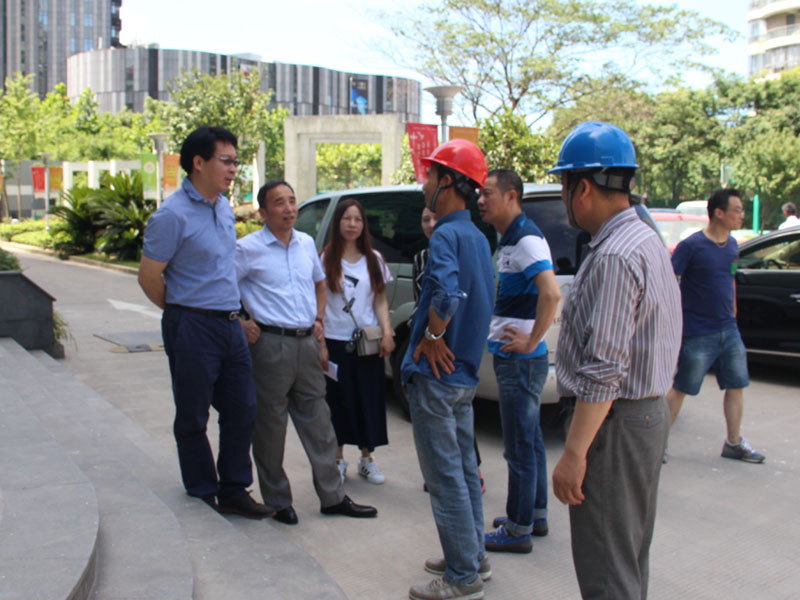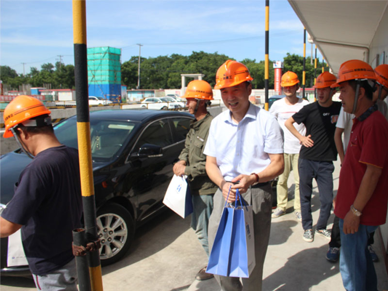 2017年7月17日,集团副总裁董光耀、肖浩升,人力资源部经理员哲琳以及办公室相关人员在杉海总经理余朝锋、副总经理林松丰的陪同下。冒着酷暑,视察了目前公司在建的五个项目,并带来了精心准备的夏令用品对生产第一线工人进行慰问。